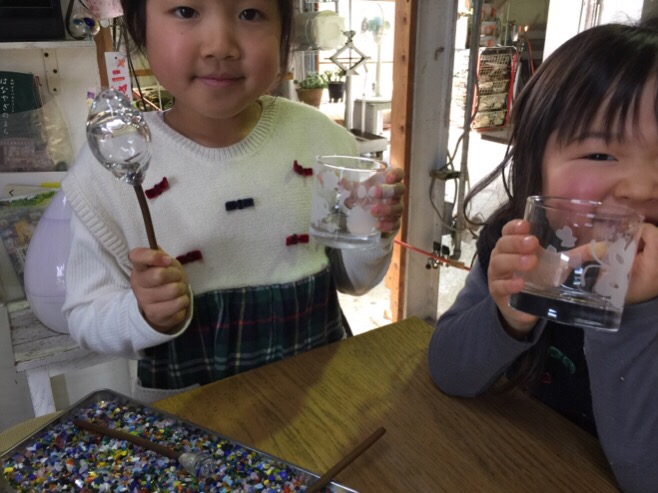5人家族でサンドブラスト体験に来て下さいました。お姉ちゃんと妹さんがサンドブラスト体験でコップを作っていってくれました。