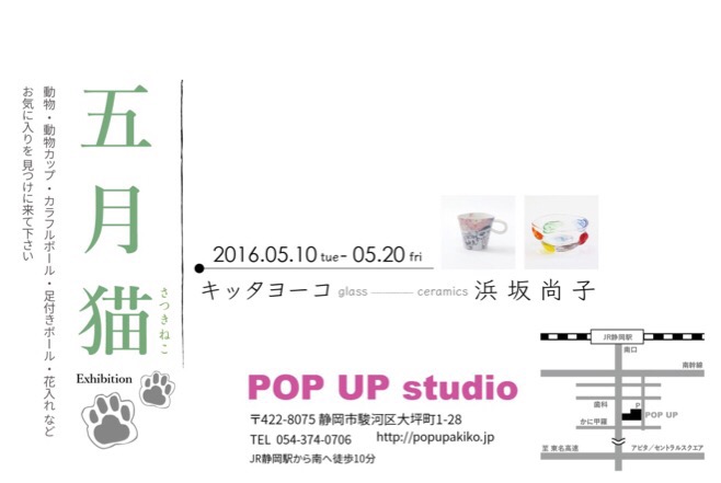 五月猫というタイトルで常滑の浜坂尚子さんと2人展です。静岡の駅から歩いて行けるPOP UP studioさんです。