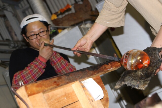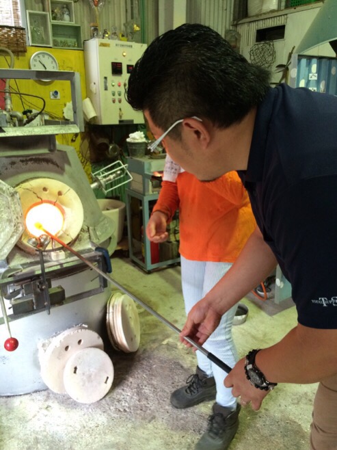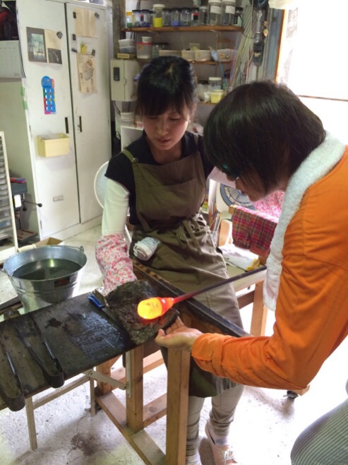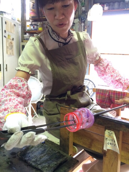 暑い夏に 暑い吹きガラス体験 思いきり汗を流して下さい。