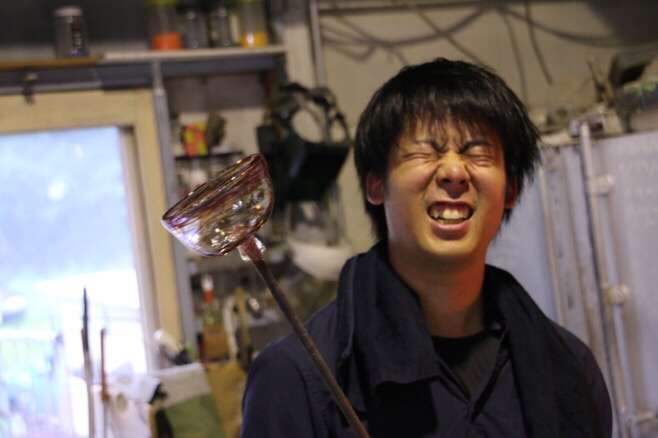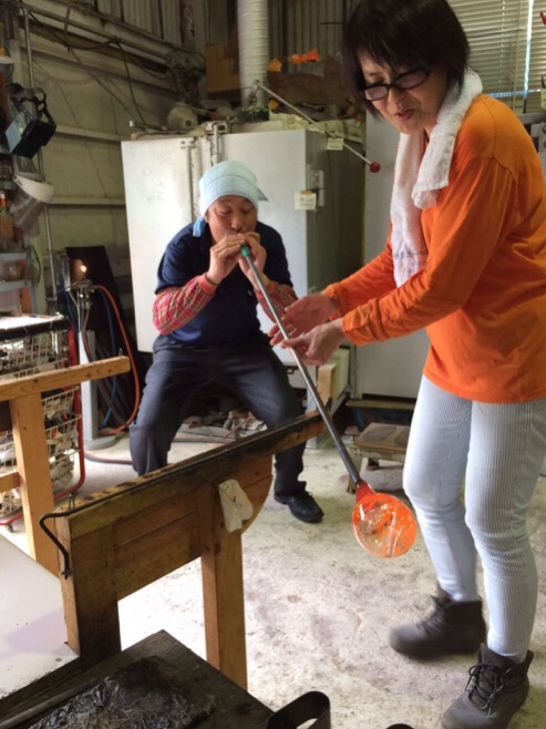 ツーリングの予定だった日の天気がわるかったので 予定を変更して 吹きガラス体験に来て下さいました。