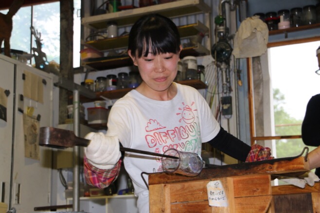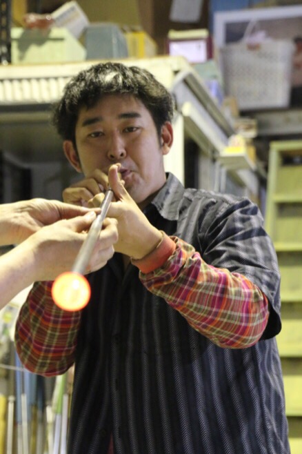 熱いガラスを巻き取ると 誰でもつい真剣になってしまいます。日頃見られない真剣な顔が 見られますよ。 自分で作るのも 楽しいですが 他の人の作っている時の真剣な顔も ぜひ お写真に撮ってあげて 記録にのこしてあげて下さいね。
