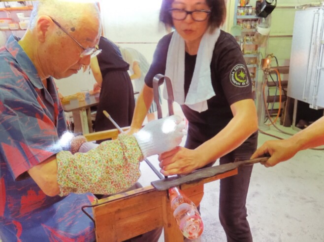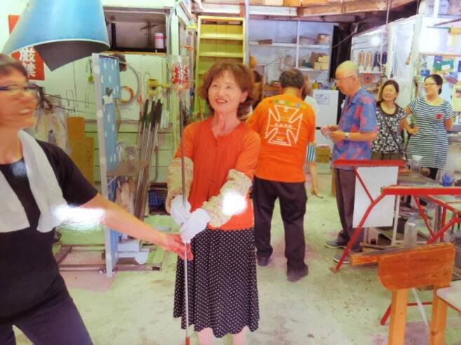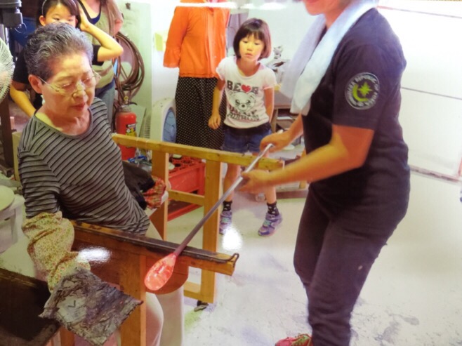 先日小学生のお孫さん2人おばあさんおじいさんとみなさんで 吹きガラス体験でコップ作りに来て頂きました。人生70年 これは楽しいと とても喜んで作ってもらいました。ぜひご家族で想い出の時間を作って下さい。そして 自分で作ったコップを使うたびに楽しい時間を思い出してください。