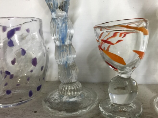 最近ちょくちょく お手伝いしてもらっている男の子に作ってもらってます。吹きガラスが初めての人も作れるように、初心者の男の子に聞きながら かわいいワイングラス考えてますよ。私が作るより ずーっとかわいくて 困るなー。でも 楽しみです。