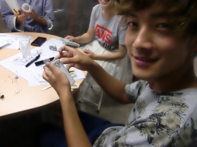 コップにサインをして完成