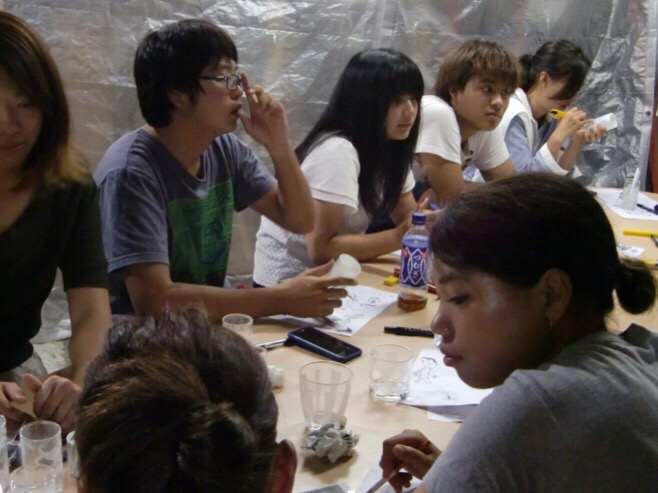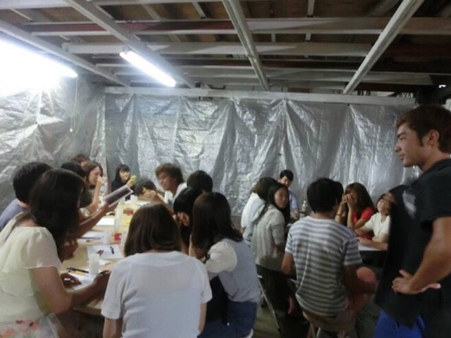 朝から雨降りでしたが 吹きガラスはインドア体験 工房の中はホットでした。皆さん大学生 医学部のテニスサークル 昨日は知多半島だったらしいです。大人数の時は沖口 こずえさんに来て頂き同時に2人体験して頂けて 30人の体験は 3時間の予定です。今回は途中からこずえちゃんとなべちゃんが抜けてプラス1時間になってしまい みなさんのお昼ご飯が遅くなってしまい すいませんでした。待って頂いている時間に コップにサンドブラストしてもらいました。10人以上の体験の方に サービスで サンドブラストして頂いてます。 吹きガラスのコップは出来上がり500度以上で当時は持ってかえれませんが、サンドブラストのコップは持って帰ってもらえます。