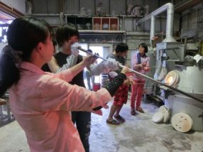 30人の吹きガラス体験