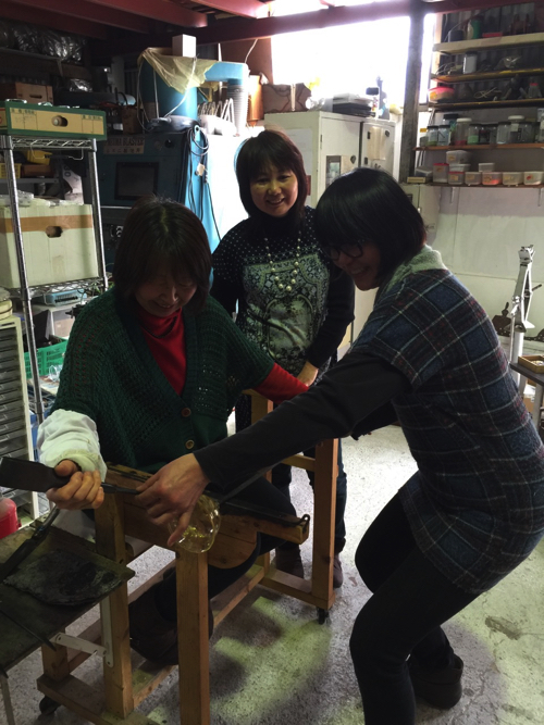 とても50歳を過ぎた人達とは思えない、盛り上がりでした。たまに懐かしい人達と会って吹きガラス体験もいいですねー。