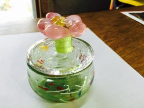 昨日の吹きガラスとサンドブラストの体験をされた方が、朝 吹きガラスのコップを受け取りに来てくれました。とても動物好きなご家族さまだなっと思っていましたら、 獣医さんだと聞き びっくりしました。お姉さんが大学が決まり、高校生の弟さんとお母さんが、今日は伊勢神宮に行きましょうと言っていたところ、弟さんが別の所がいいと言って吹きガラスの体験になり、スタジオバクザウルスに来てくれたのだと、今日の朝聞いて、まー、なんとスタジオバクザウルスさん伊勢神宮さまに 勝ってしまいましたー。 吹きガラスはその日に持って帰れませんが サンドブラストは当日持って帰れます。弟君、サイダーを飲んで満足そうだったとお母さんから聞き、私も うれしかったです。また皆さんで来て下さい。